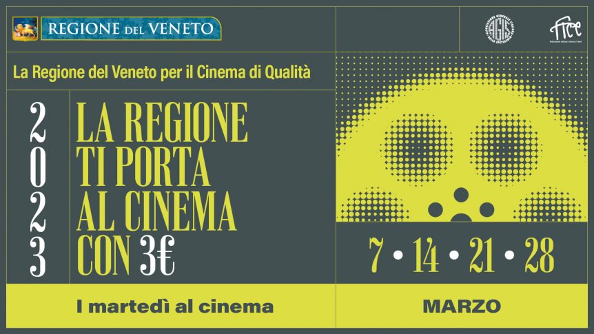 Tornano in Veneto gli appuntamenti con il cinema a tre euro: ventotto le sale coinvolte nei mesi di marzo, maggio e novembre. Si parte martedì 7 marzo 2023