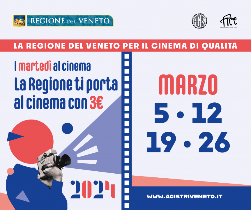Dai Festival internazionali alle sale del Veneto – A marzo, maggio e novembre tornano con la Regione del Veneto i Martedì al Cinema a 3 euro. Trentuno gli schermi coinvolti